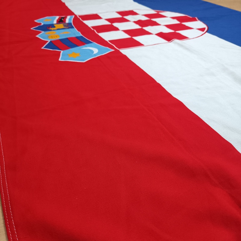 La bandera de Croacia consiste en tres franjas horizontales de igual tamaño de color rojo, blanco y azul. En el medio se encuentra el escudo de armas de Croacia. La bandera está en vigencia desde el 21 de diciembre de 1990, diez meses antes de su independencia.