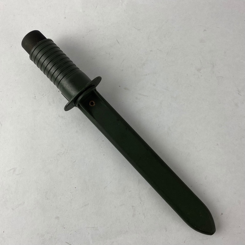 Bayoneta sin la parte posterior con el reten ni la parte de lona remachada a la vaina de plástico para colocar en el ceñidor.