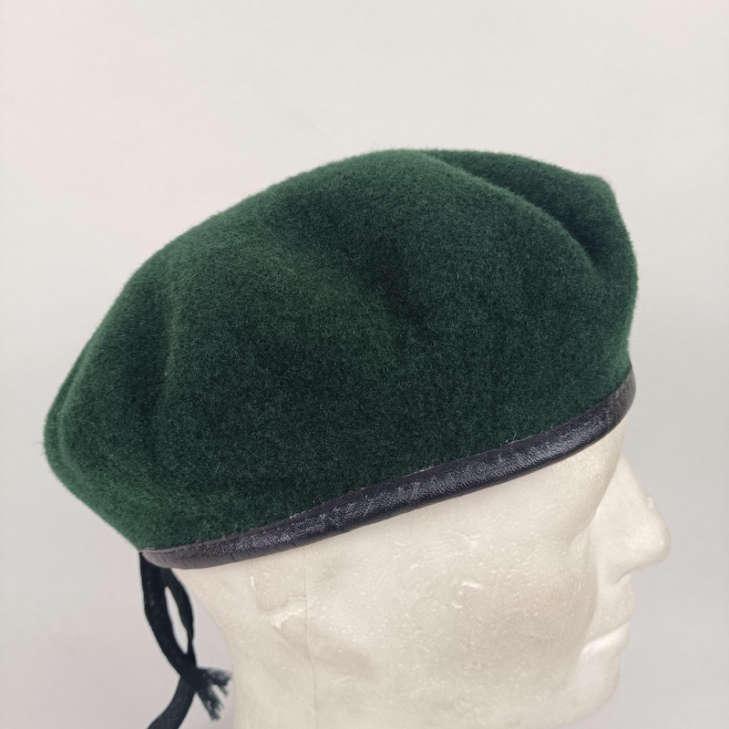 Boina verde con insignia metálica plateada de estrella y hoja de laurel, usada por unidades especiales fronteriza de la policía israelí.