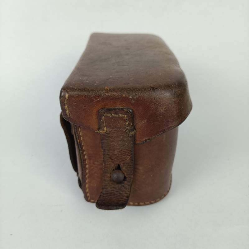 En buen estado de conservación, lleva dos correas detrás para pasar la funda por el cinturón. Completo con tapa y botones en buen estado, sin roturas ni grietas. Excelente para completar un uniforme o recreación histórica de la Segunda Guerra Mundial. Marcajes de fabricante perfectamente visibles, con etiqueta en el interior de 1937.