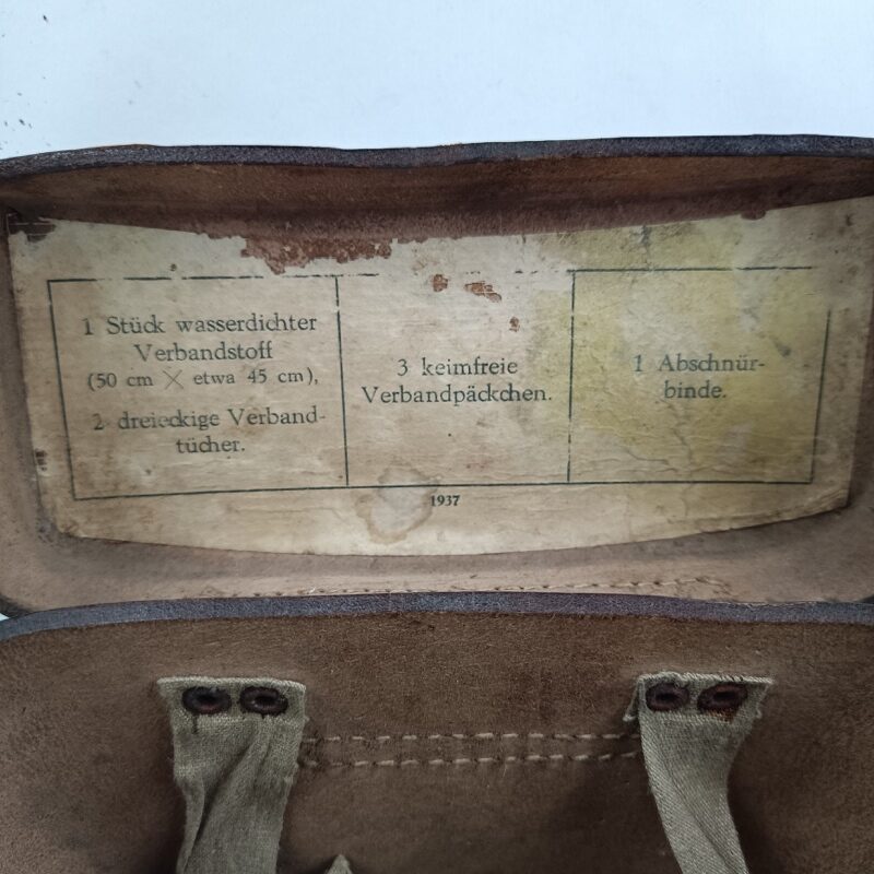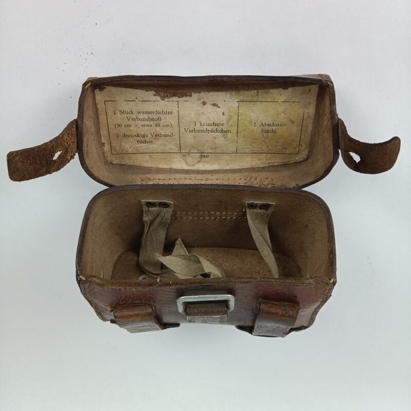 Botiquín de cuero, funda para transporte de equipo médico con cierre mediante dos correas de cuero en los laterales. Primer modelo utilizado por el Ejército Alemán durante la segunda Guerra Mundial.