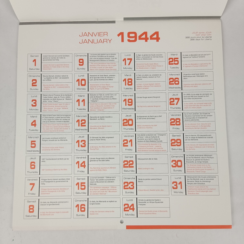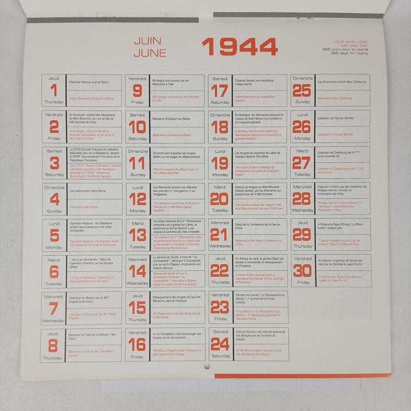 Calendario conmemorativo de 1944 publicado por OREP Editions, en Inglés y Francés. Publicado en el año 2000.