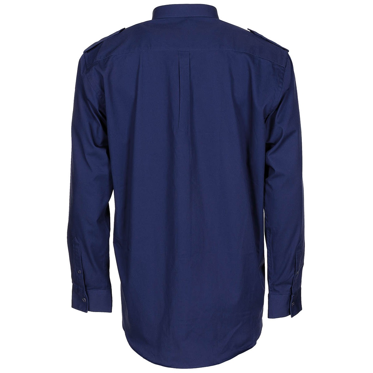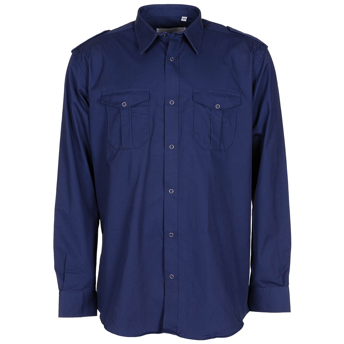 Camisa militar azul de faena, de Países Bajos, con frontal abotonado y dos bolsillos a la altura del pecho.