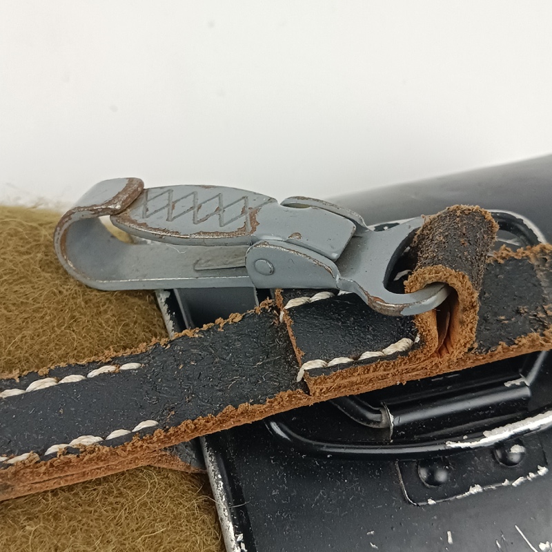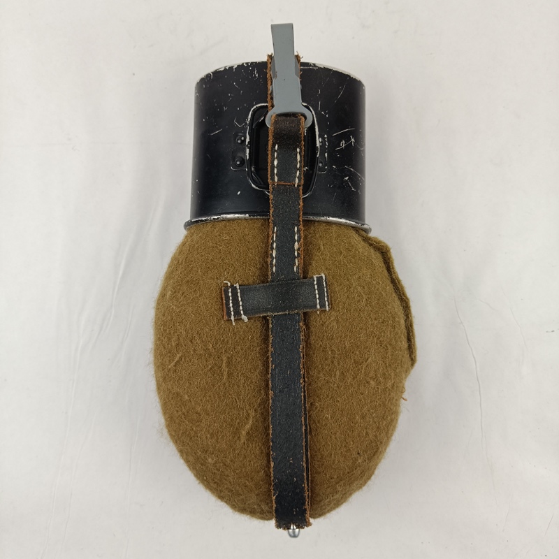 Cantimplora estándar del Ejército Alemán utilizada durante toda la Guerra, modelo M31. En el exterior lleva una funda de lana para aislar el contenido de la misma. Marcajes de producción en el cuello de la misma y el cazo negro que lleva encima. Envejecida, de aspecto realmente antiguo, ideal tanto para coleccion como recreación.