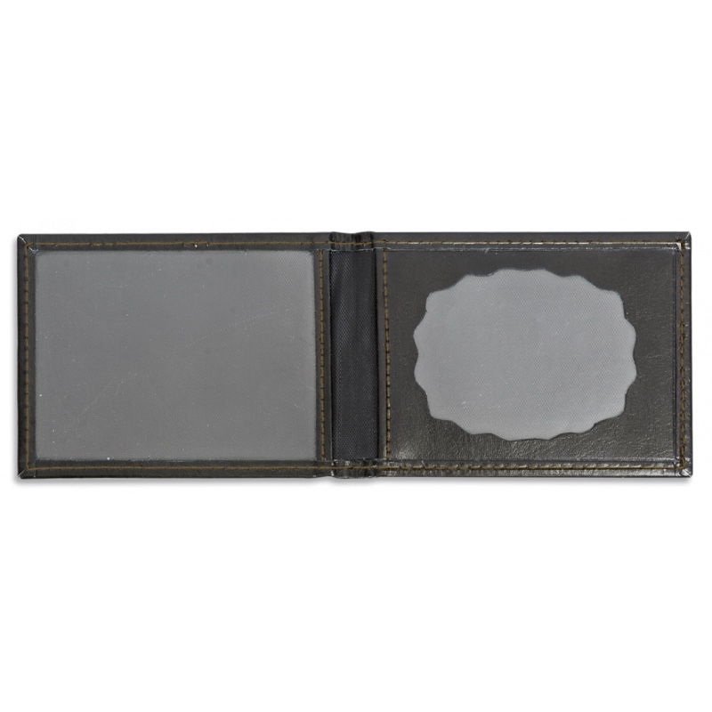 El interior dispone de un compartimento transparente para la credencial y un espacio troquelado destinado a alojar la placa. Formato plegable compacto, pensado para uso profesional por fuerzas de seguridad o coleccionismo. Modelo simple sin compartimento de billetera.