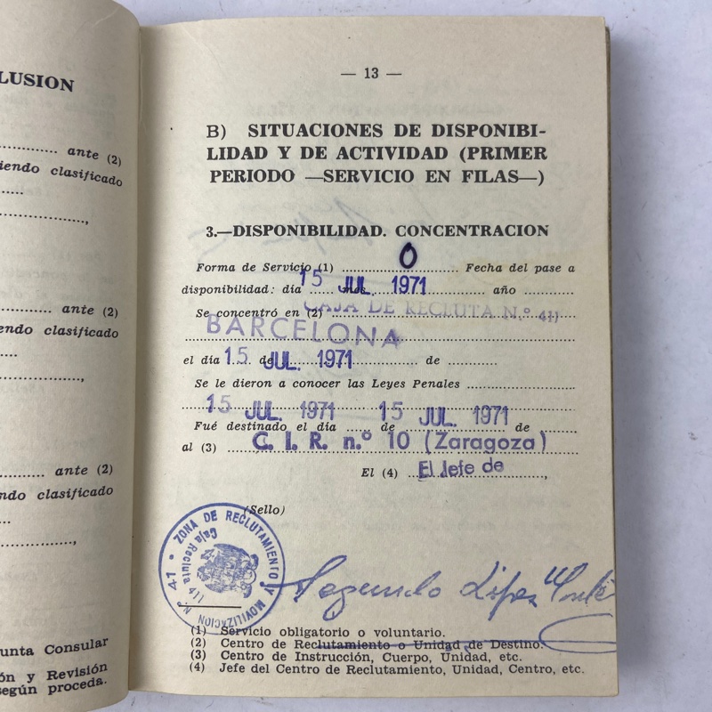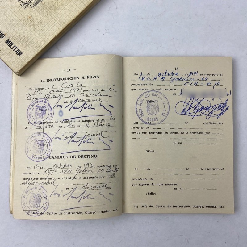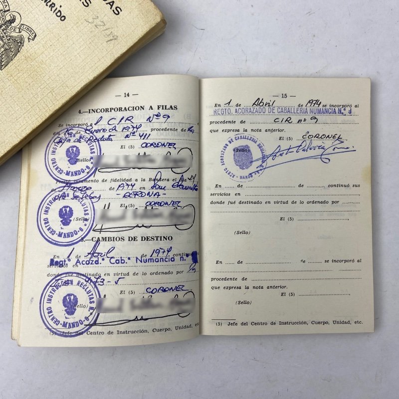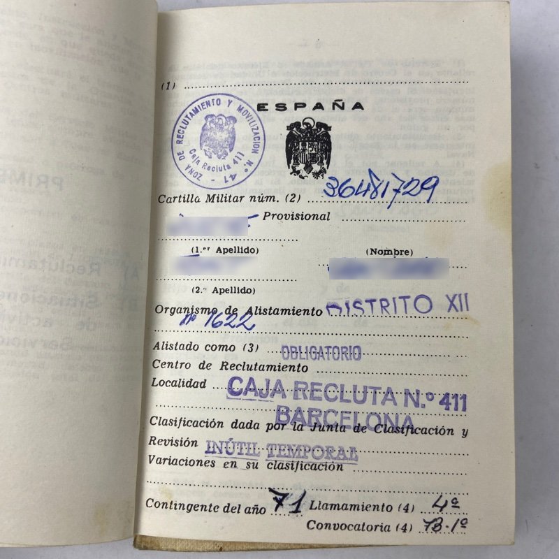 Cartilla del Servicio Militar España, modelos de los años 70.
