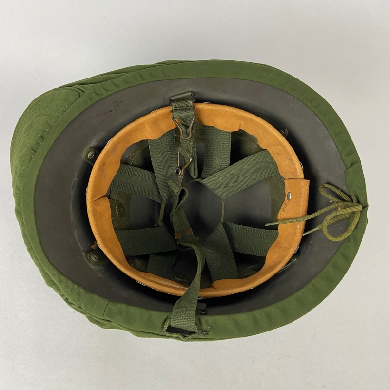 Casco sueco de combate con funda de camuflaje y cubrenuca integral. Casco de los años 60, versión modernizada con interior y barboquejo nuevos.