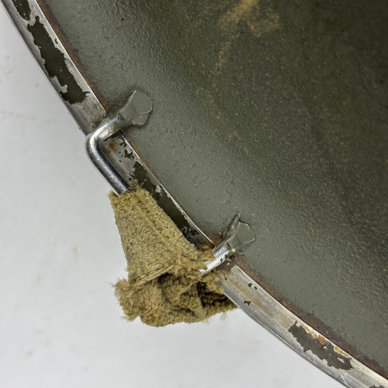 Olla de acero con pintura exterior rugosa para evitar reflejos en el mismo. Calca de la 87 Division de Infanteria en el frontal.