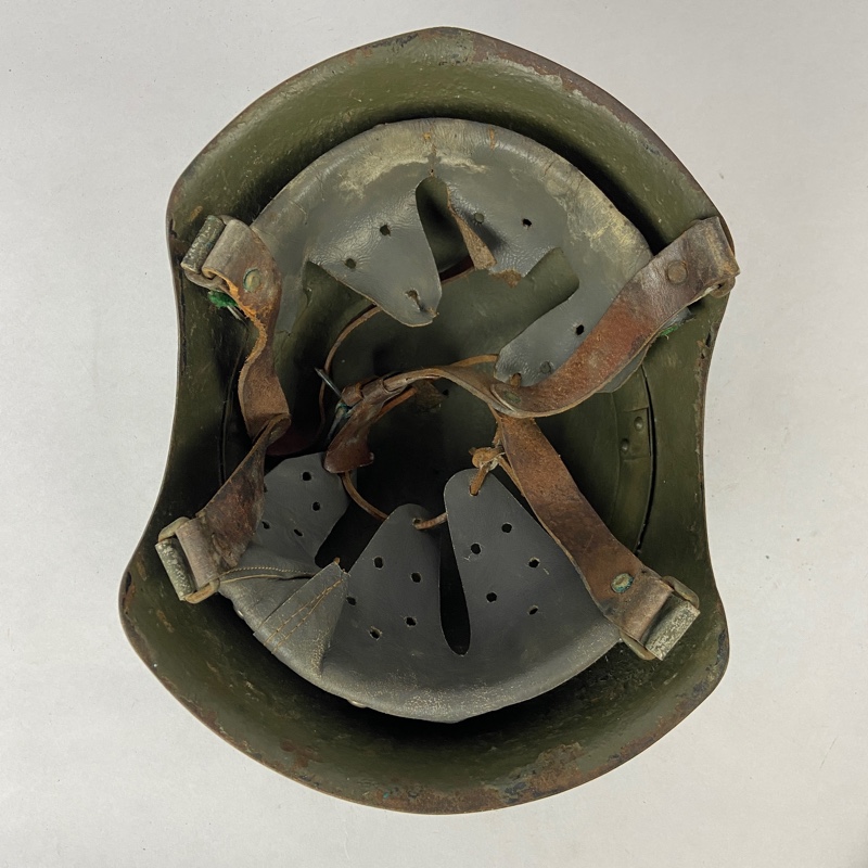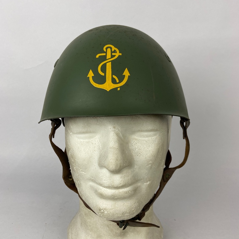 Fabricado para las tripulaciones de la Regia Marina durante la Segunda Guerra Mundial, Se usó ampliamente incluso después de la guerra, probablemente hasta los años 60. Utilizado por el personal de artillería naval, preparado para auriculares y micrófono.