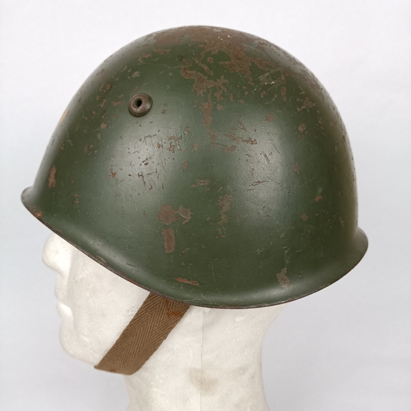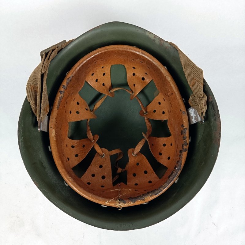 Casco Italiano modelo M33 de posguerra, con barboquejo de lona. Idéntico a los utilizados por los italianos durante la segunda Guerra Mundial.