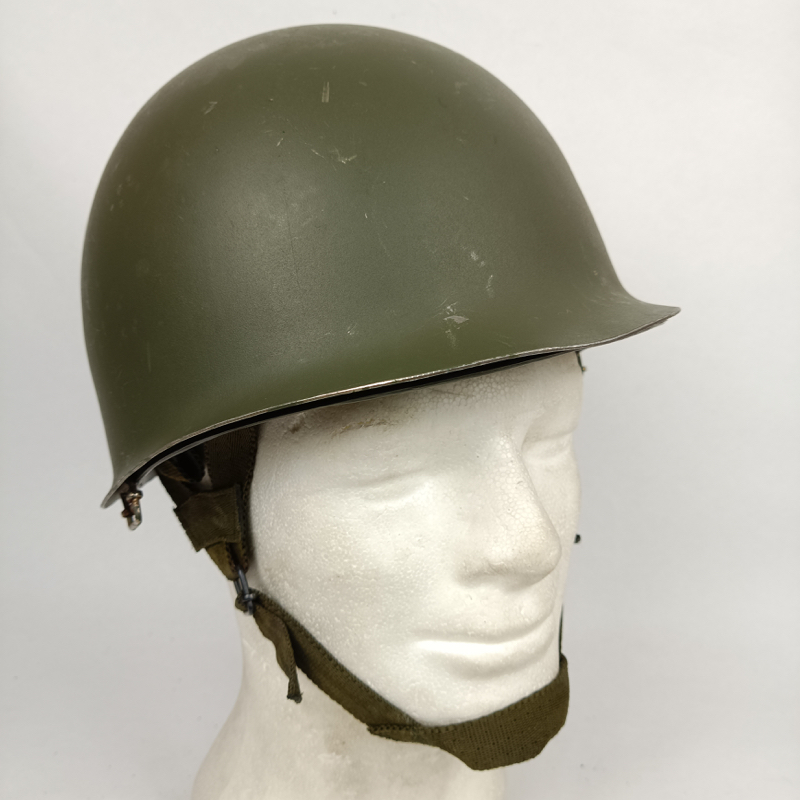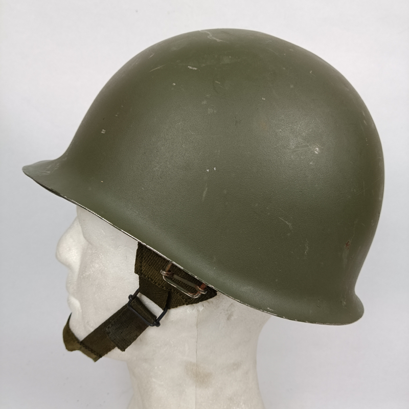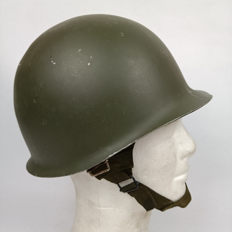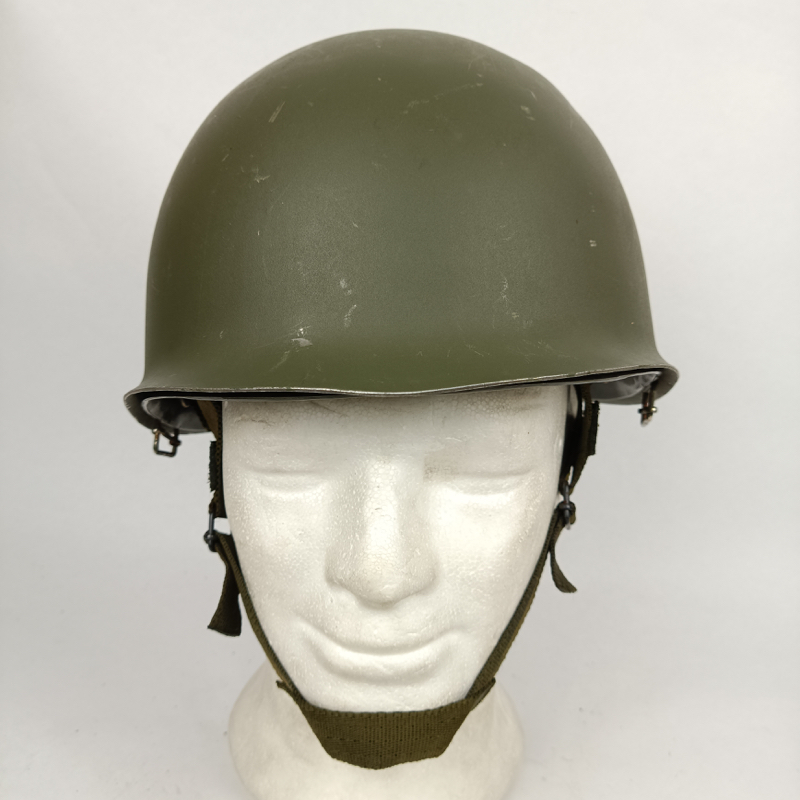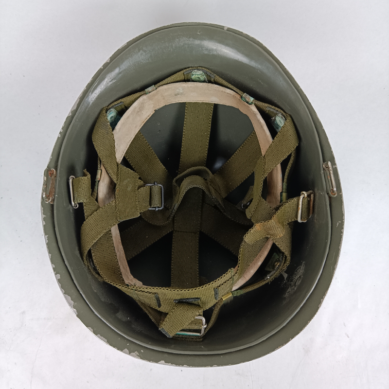 Casco de acero modelo M65 o F1 del Ejército Español, adoptado en 1965 y ampliamente utilizado por unidades como Infantería de Marina y la Brigada Paracaidista (BRIPAC) durante las décadas de 1970 y 1980. Su diseño sigue la línea del casco estadounidense M1, con conjunto de casco exterior y atalaje interior independiente.