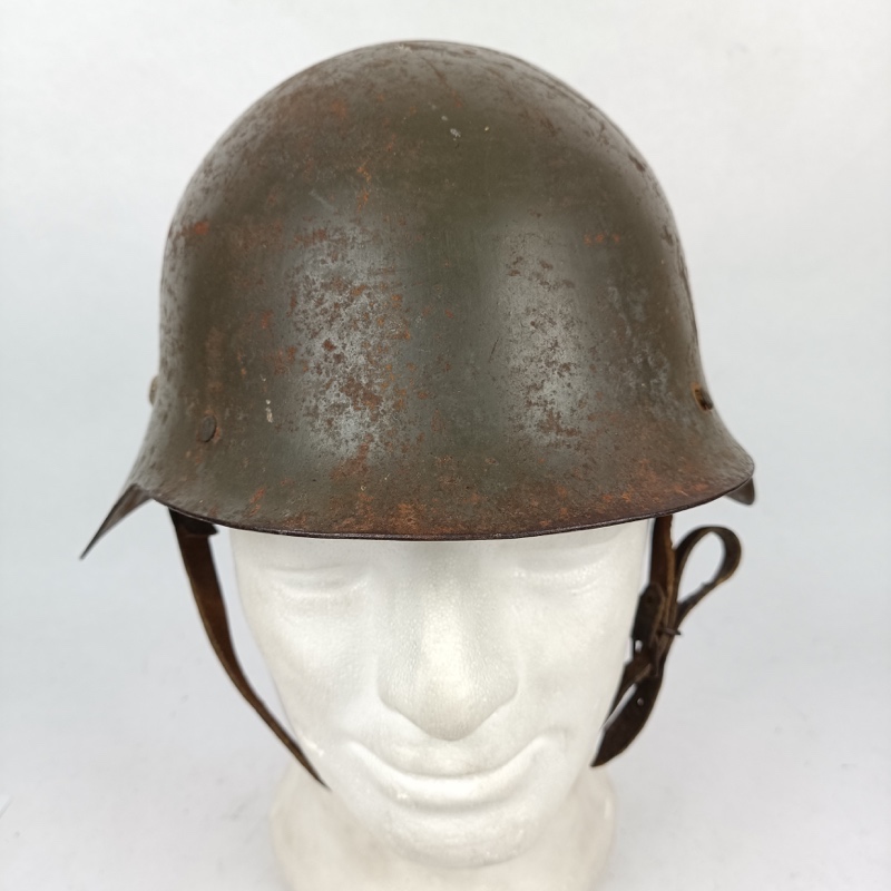 Casco Trubia M26 Gris Cemento de la Guerra Civil Española, con su color original al comienzo de la contienda y cuero del barboquejo.