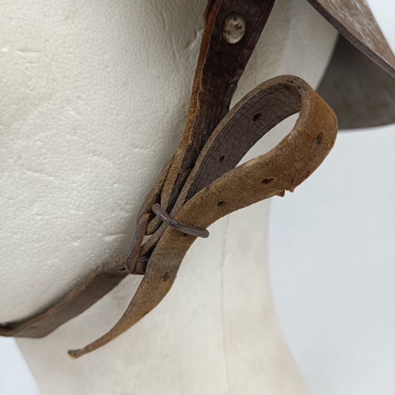 Remaches originales de aireación que sujetan el barboquejo marrón avellana, original y completo en buen estado.