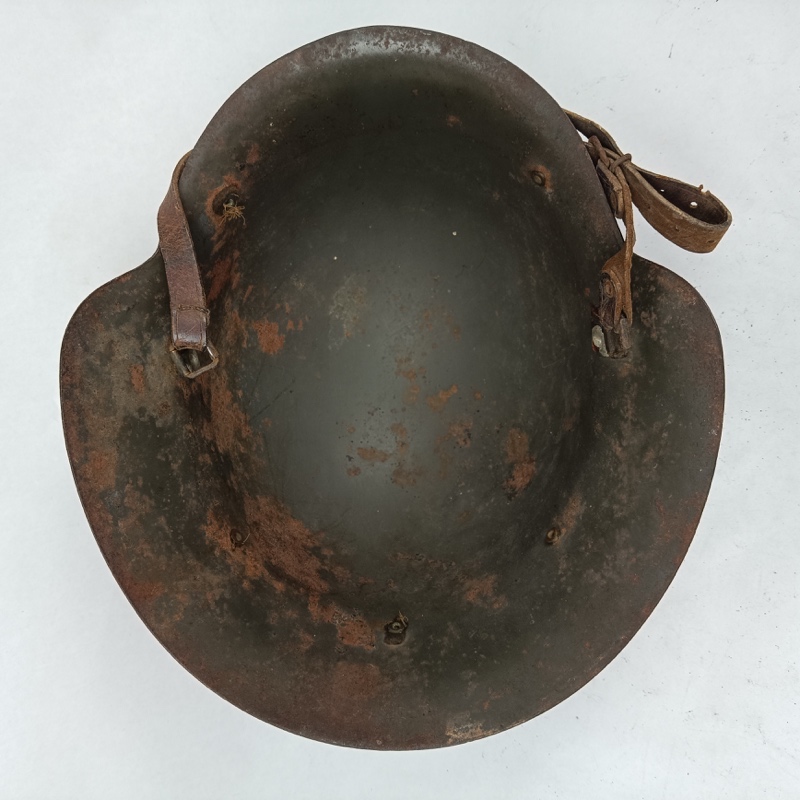Casco Trubia M26 Gris Cemento de la Guerra Civil con buena apariencia general, sin reutilizar en la posguerra, tal cual se utilizó.