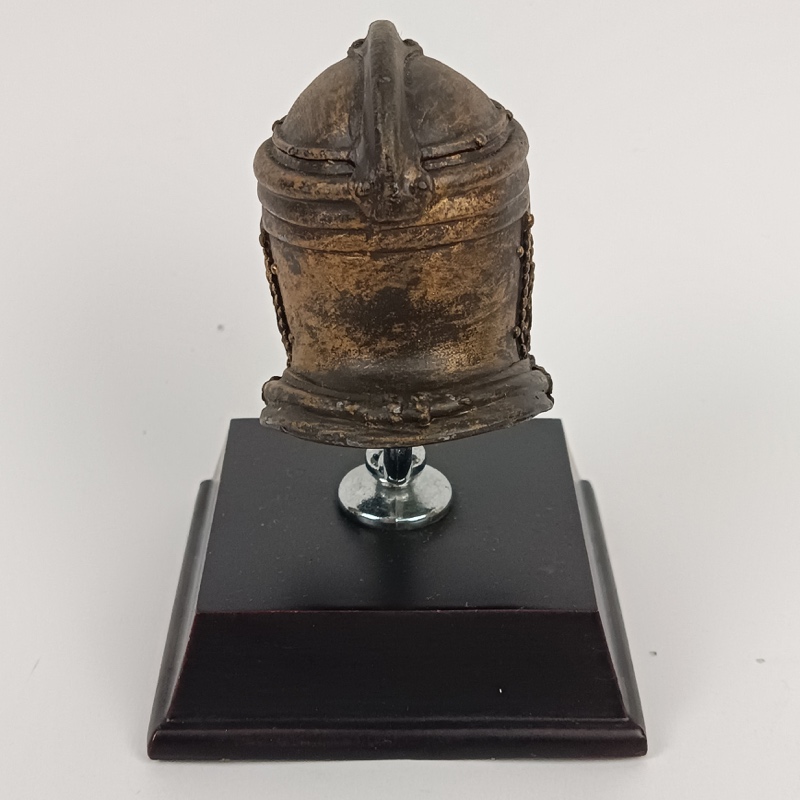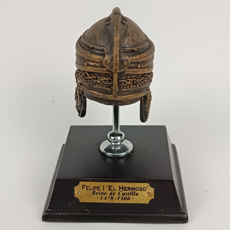 Casco en miniatura perteneciente a la colección “Cascos Históricos” publicada por SALVAT. Colección a escala 1:5 de los cascos portados por personajes ilustres de todas las épocas, desde la antigüedad hasta el siglo XX.