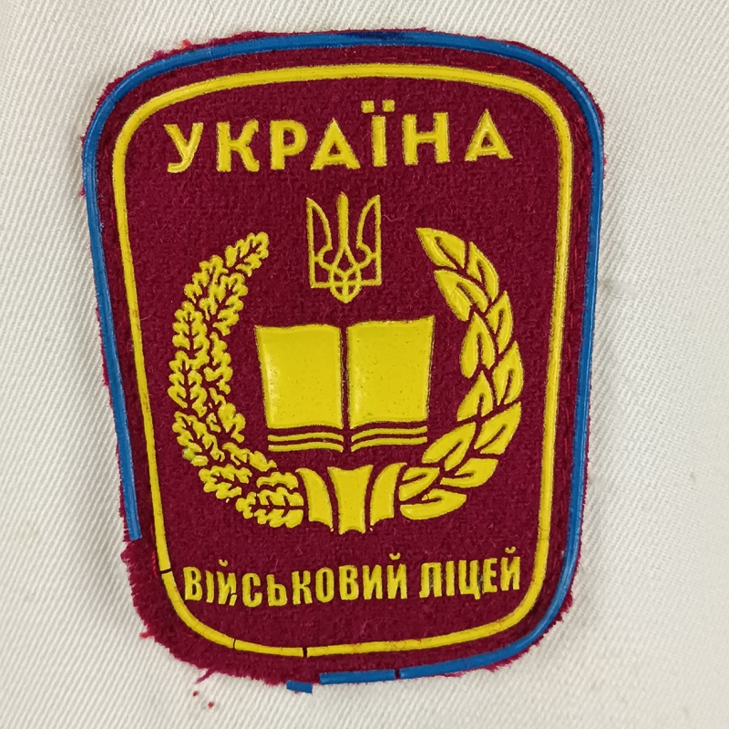 En la manga se observa parche del Liceo Militar con inscripción en cirílico “Україна” y emblema con libro y corona de laurel, distintivo de centros de formación militar. Conserva presillas para hombreras y todos sus botones originales.