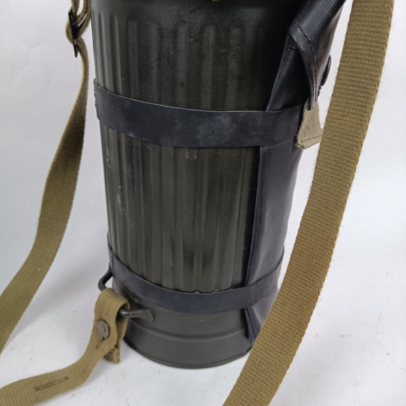 Cinta de goma para máscara de gas Alemana de la Segunda guerra Mundial, utilizada para sujetar los ponchos anticontaminación a los botes de máscaras.