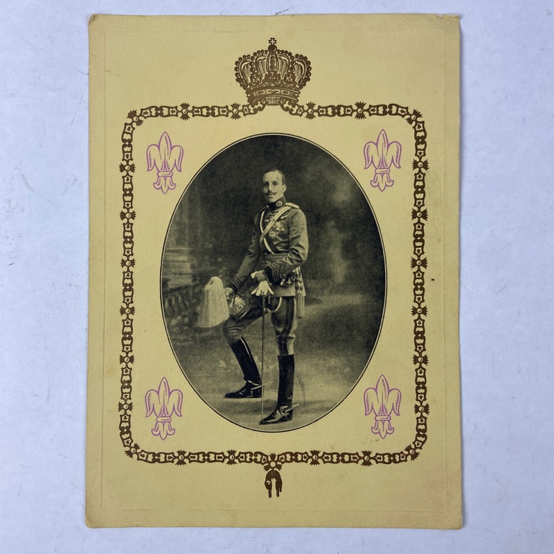 Conjunto de dos impresos conmemorativos dedicados al rey Alfonso XIII. Editados con motivo del aniversario de su fallecimiento, incluyen retratos del monarca, elementos heráldicos con corona real y flores de lis, así como textos y poemas dedicados a su memoria.