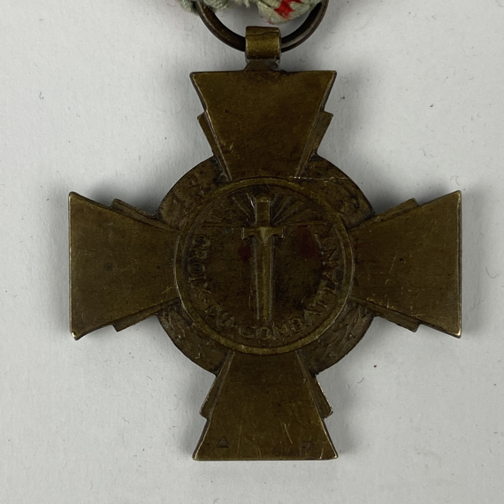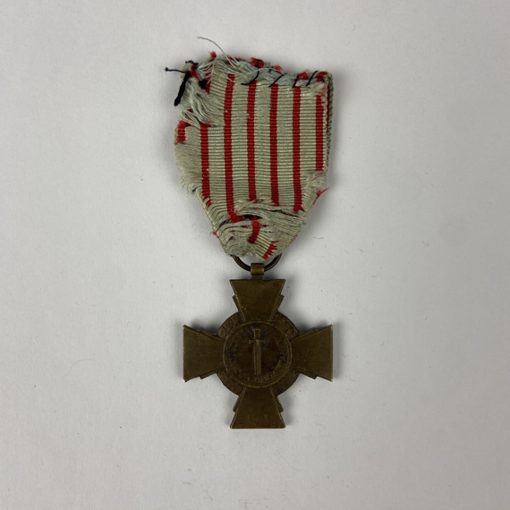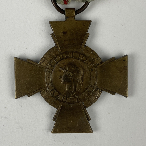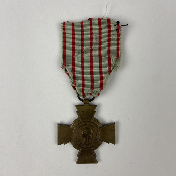 Condecoración francesa, instaurada en 1930, creada para distinguir a aquellos soldados que participaron en combates en nombre de Francia. Para su concesión, se requería una estancia mínima de 3 meses en una unidad de combate en el frente, o bien una mención al valor o haber sido herido en combate. Medalla de bronce con forma de cruz, con detalles bien visibles.