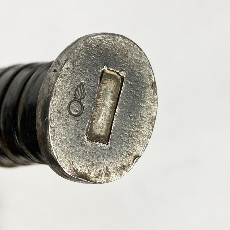 Cuchillo combate con marca de fabricación y modelo en la parte inferior de la guarda, perfectamente visible. en el pomo lleva una bomba llameante, símbolo del ejército de los Estados Unidos.
