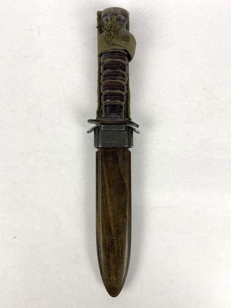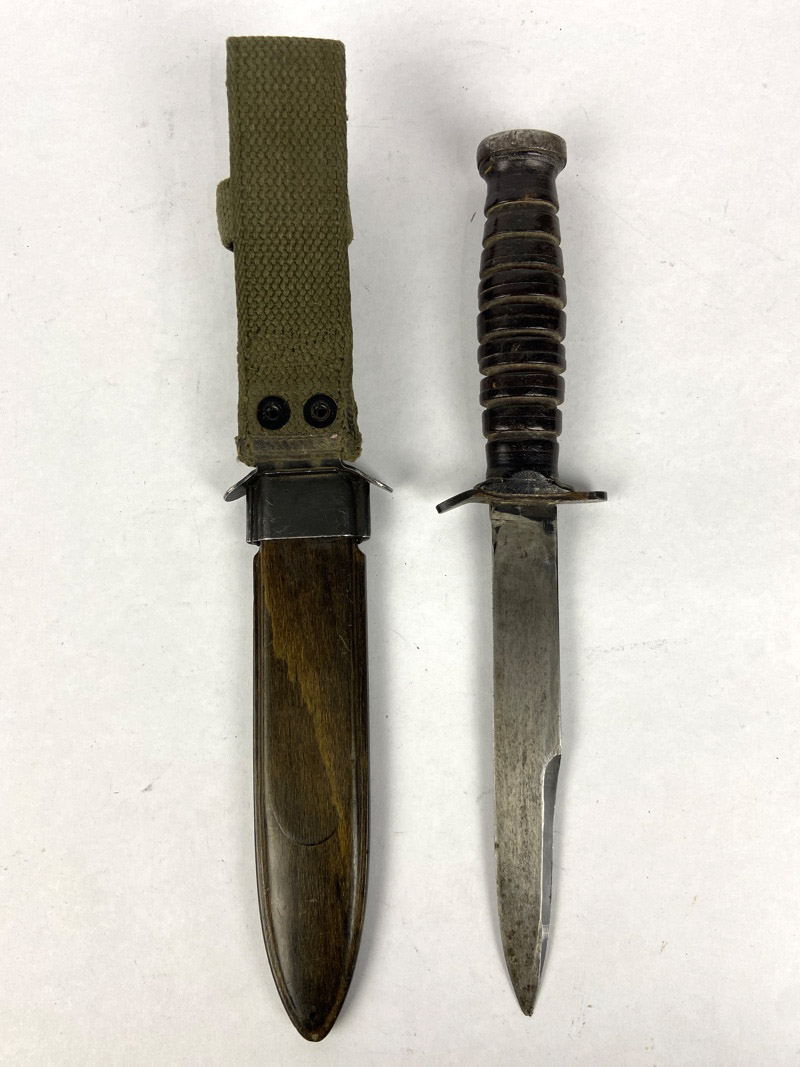 Cuchillo M3 del Ejército de los Estados Unidos, fabricado por Camillus durante al Segunda Guerra Mundial. Hoja con desgaste pero que mantiene la longitud original 6,5 pulgadas.