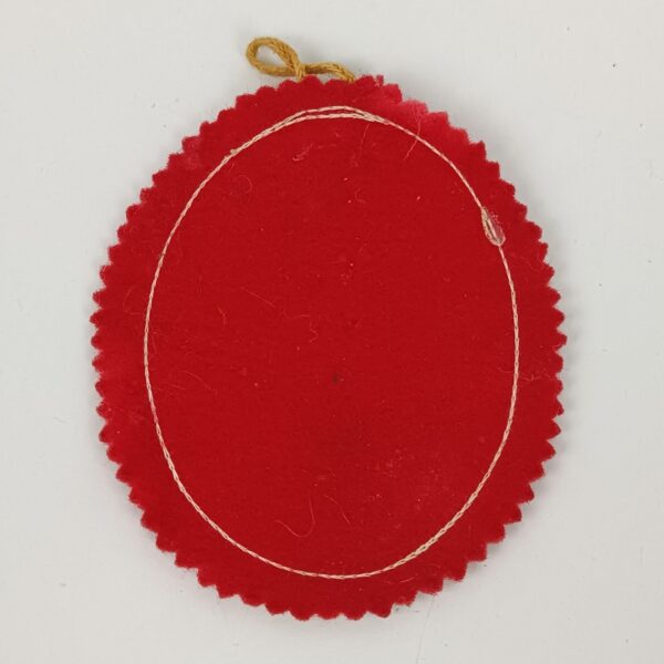 Detente del Sagrado Corazón de Jesús, cosido sobre tela con enganche en la parte superior para colgar del pecho o de un escapulario.