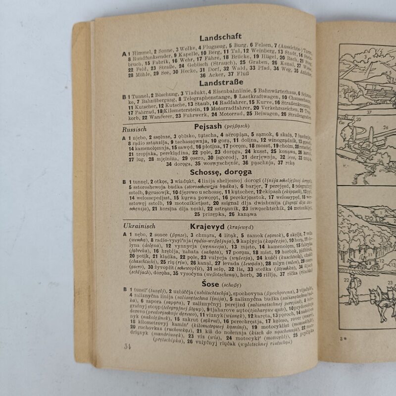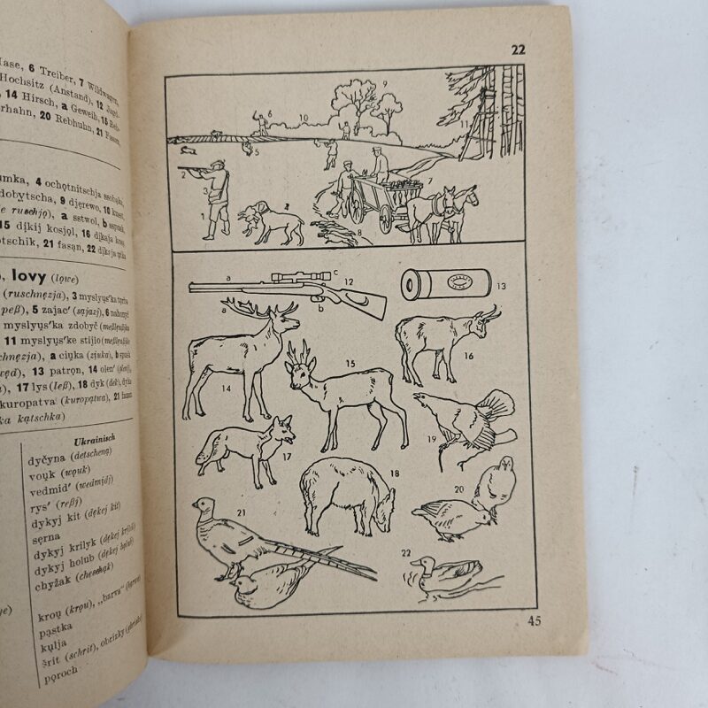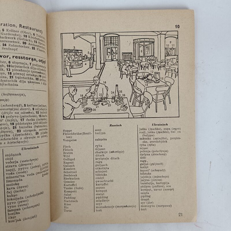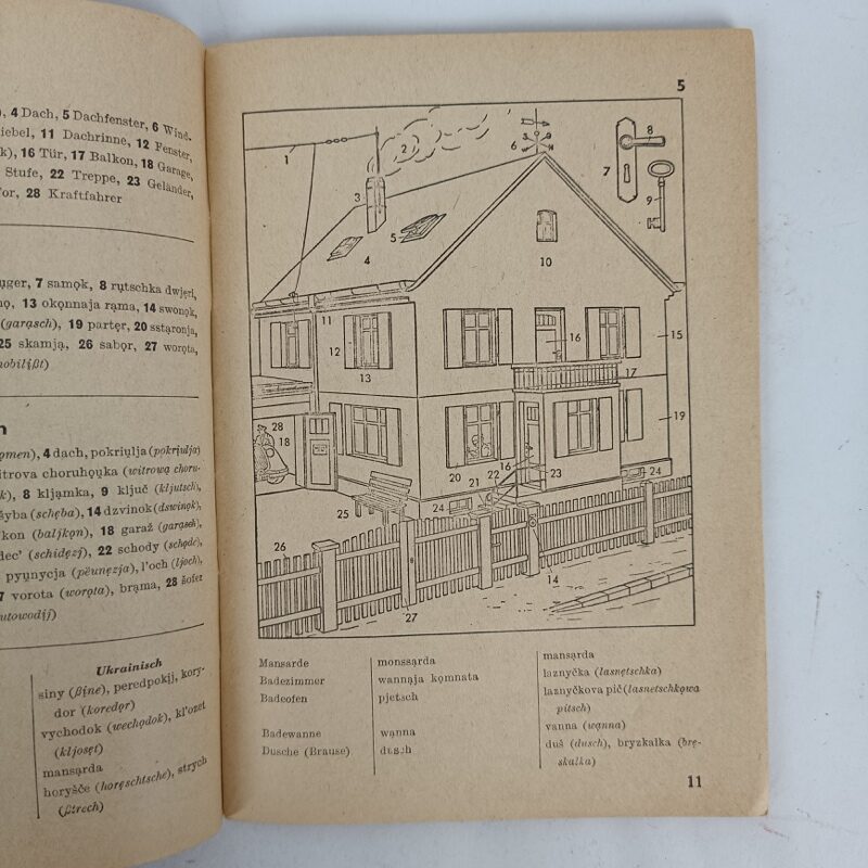 Libro de referencia con dibujos y traducciones del aleman al ruso y ucraniano. Estado usado pero completo tal cual se aprecia en las imágenes. Escrito en Alemán, 64 páginas.