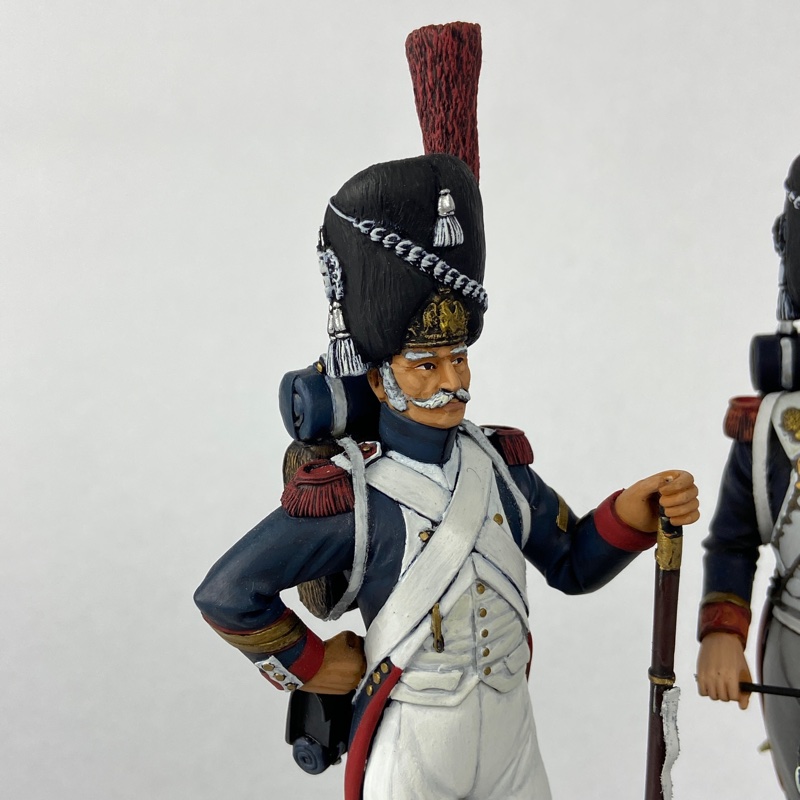 – Oficial de infantería francesa, distinguido por uniforme de mayor calidad, sable y postura de mando, representando un oficial de unidad de granaderos.