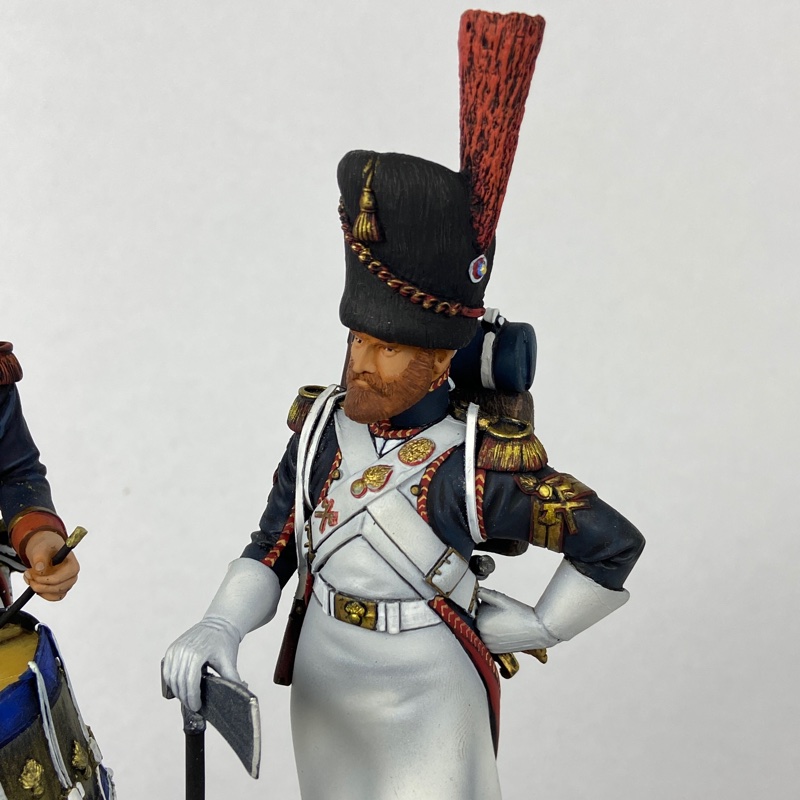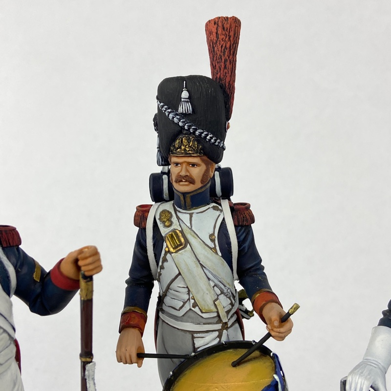 – Tamborilero de infantería francesa, con tambor reglamentario decorado y uniforme de infantería, figura encargada de transmitir órdenes y marcar el ritmo de marcha en combate. Presenta correajes cruzados y equipo completo de campaña.