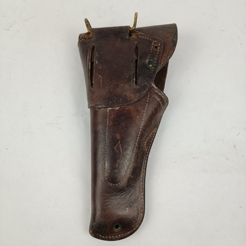 Funda modelo M1916 para pistola Colt 1911, original del Ejército de los Estados Unidos, en cuero de color marrón en buen estado de conservación a pesar del uso y el paso del tiempo.