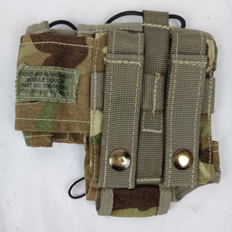 Funda para transporte de la Radio del Ejército Británico con color de camuflaje MTP. Sistema de sujeción Molle en la parte posterior con cierre en el frontal. Como nuevos.