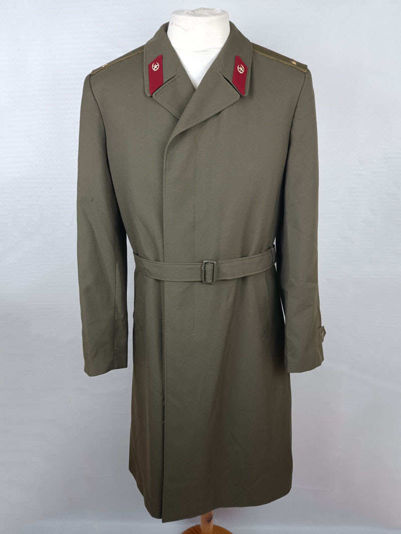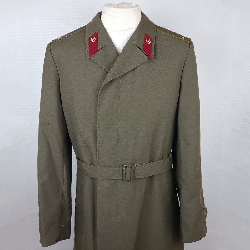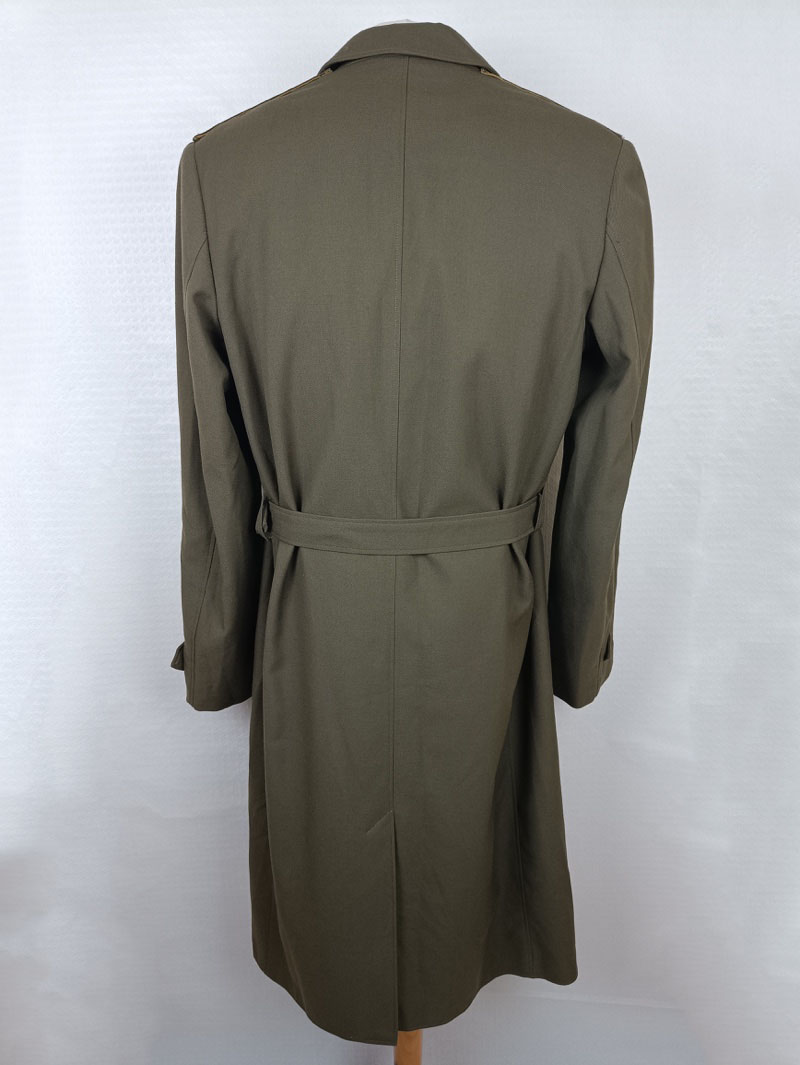 Gabardina militar soviética de uso diario confeccionada en tejido verde oliva.