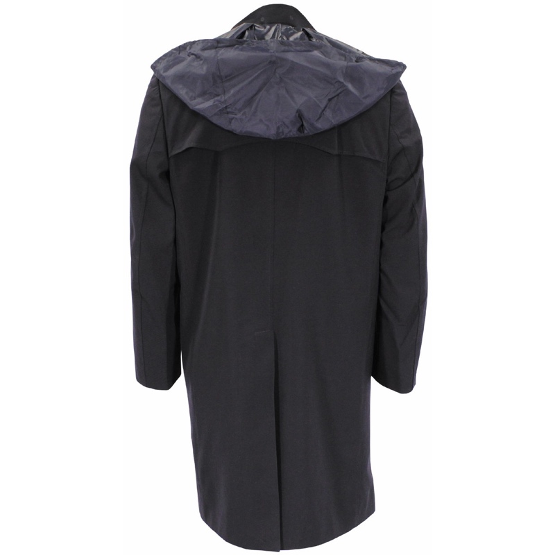 Gabardina militar con frontal abotonado y dos bolsillos en la cadera más otro interior. Exterior impermeable que repele el agua. Incluye un chaleco y una capucha que se puede abotonar al cuello de la gabardina.