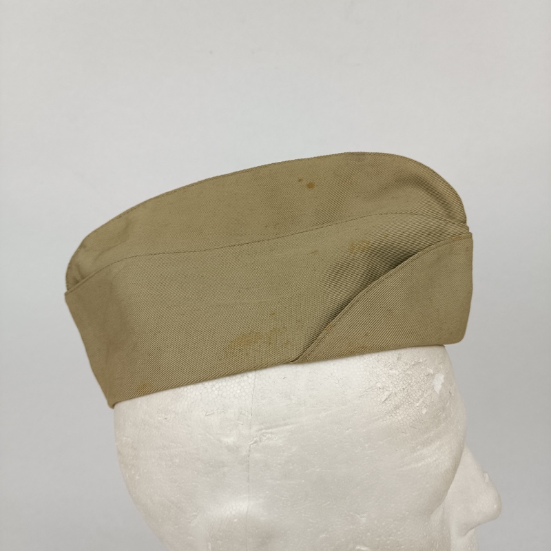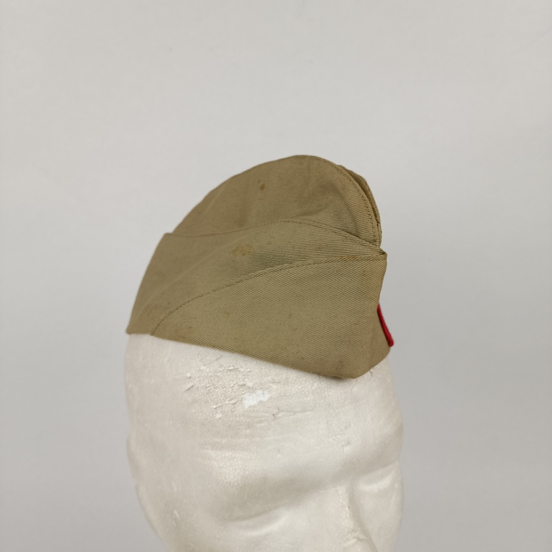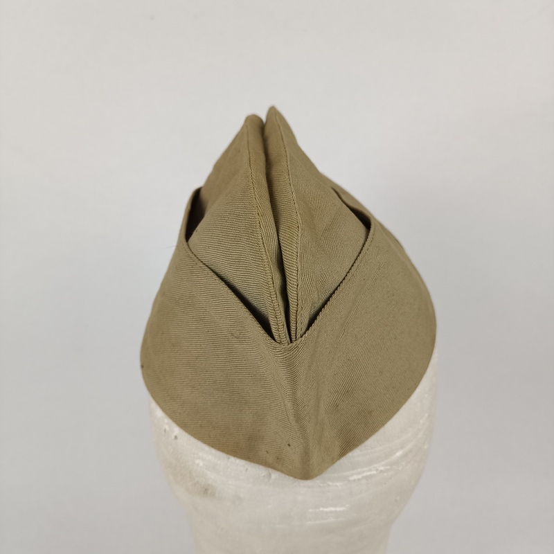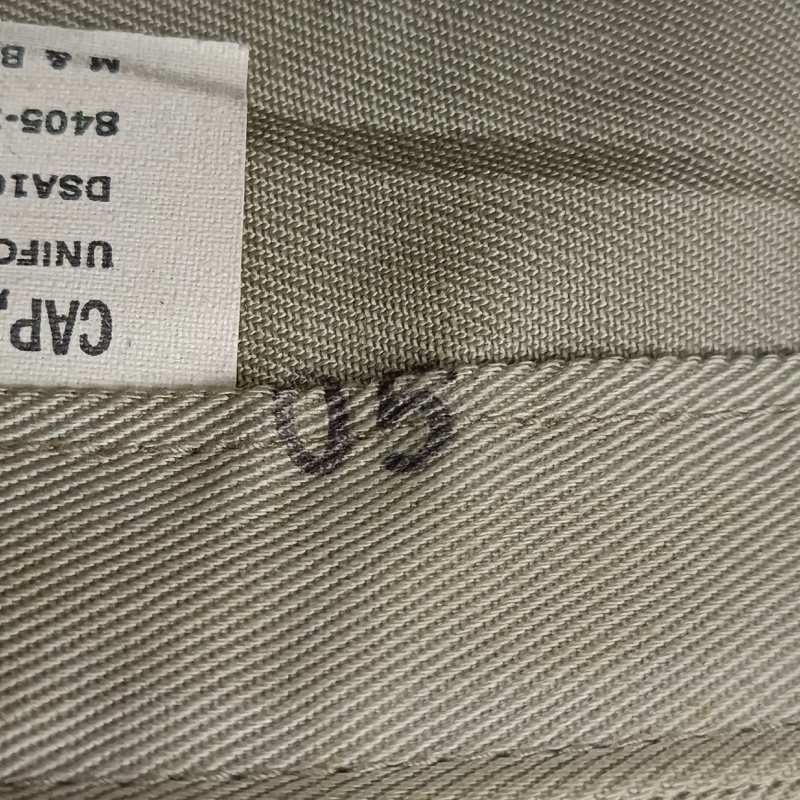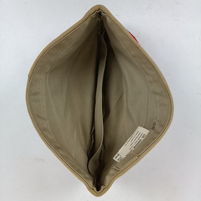Gorra cuartelera original de verano, Fabricada en sarga de algodón color caqui en el año 1968 con distintivo bordado de paracaídas. Emblema de las unidades aerotransportadas. Etiqueta original interior con código DSA y fabricante “M & B Headwear Co.”. Talla 6 3/4 (US).