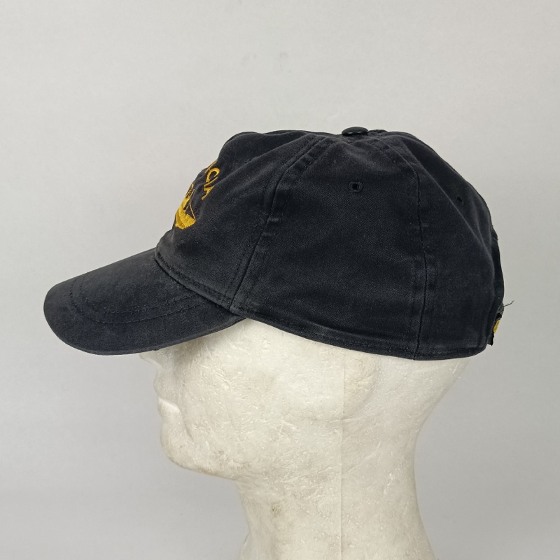 Gorra universal con velcro en la parte posterior, usada, pero completa. Bordada en amarillo, con el nombre y designación del barco además del perfil del mismo.