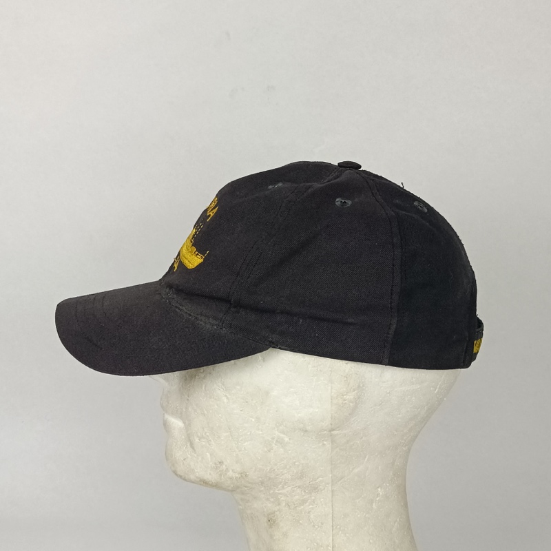 Gorra universal con velcro en la parte posterior, usada, pero completa. Bordada en amarillo, con el nombre y designación del barco además del perfil del mismo.