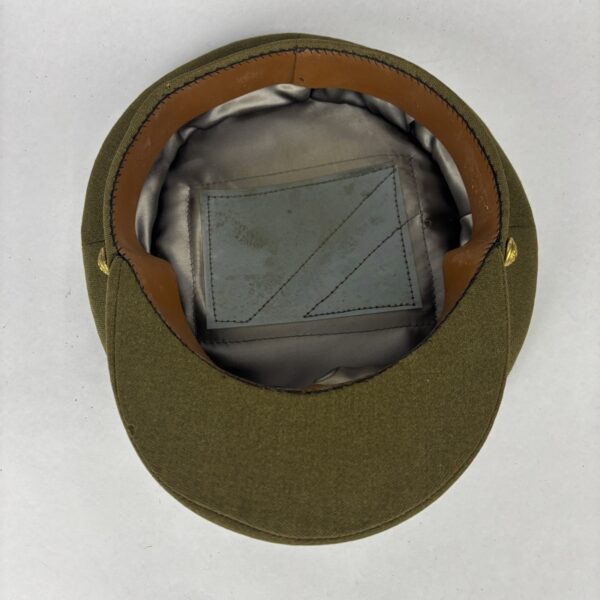 Gorra verde de Teniente Coronel con rango bordado en la banda que se distingue de las divisas regulares del Ejército español por llevar dos cruces rojas en el centro. En la parte superior águila bordada del Ejército con corona imperial.