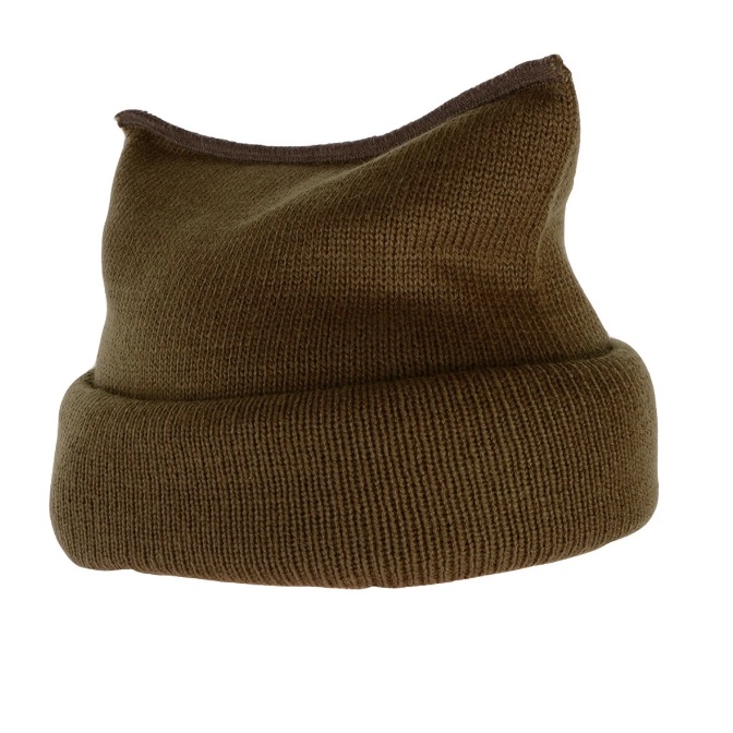 Gorro de Comando del ejercito Broitanico, en color verde oliva, fabricado en tejido de lana elástica, versátil para su uso como gorro o bufanda.