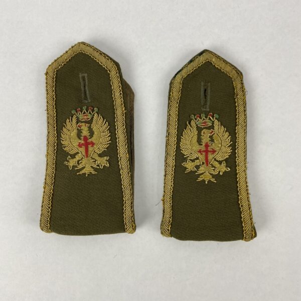 Palas o charreteras de color verde con un grueso ribete dorado, para rangos de Comandante a Coronel. Modelo de época de Franco.