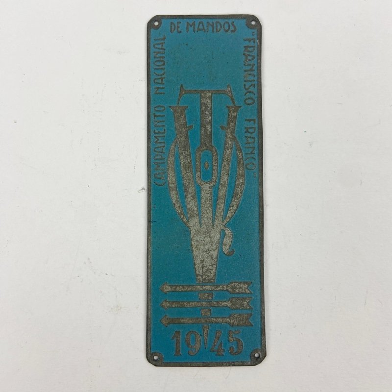 Insignia Campamento Nacional de Mandos Francisco Franco 1945 en buen estado con detalles perfectamente visibles. 88 x 29 mm.