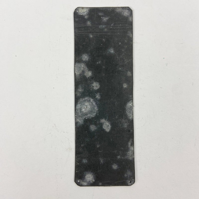 Distintivo cuadrado con fondo azul esmaltado, pensado para coser el uniforme mediante cuatro agujeros en las esquinas.