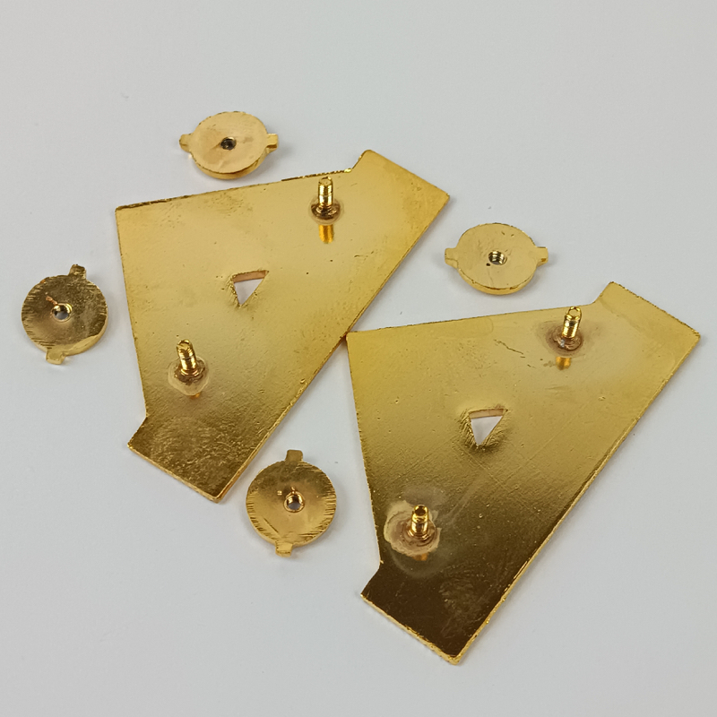 En buen estado, con sistema de fijación mediante doble pin y tuerca en la parte posterior. Precio por pareja