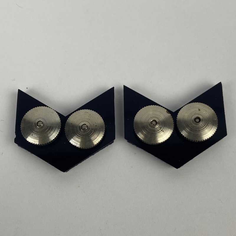 Fabricadas en goma, gruesas, con dos roscas en la parte posterior para unir al uniforme.