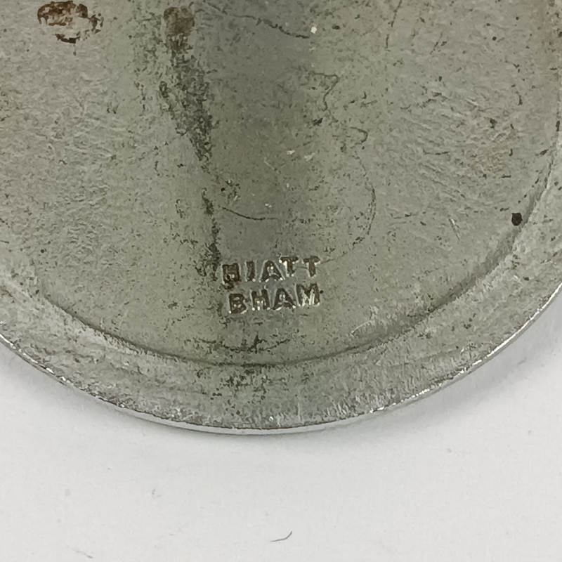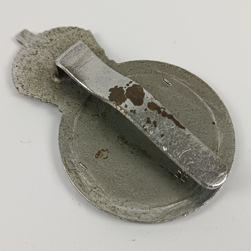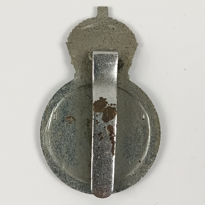 Modelo con sistema de sujeción posterior mediante clip metálico. Ejemplar firmado en el reverso “J.R. Gaunt B.Ham”, fabricante británico habitual en insignias policiales y militares, en buen estado general con desgaste acorde a su uso.