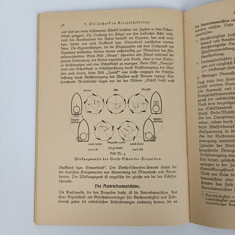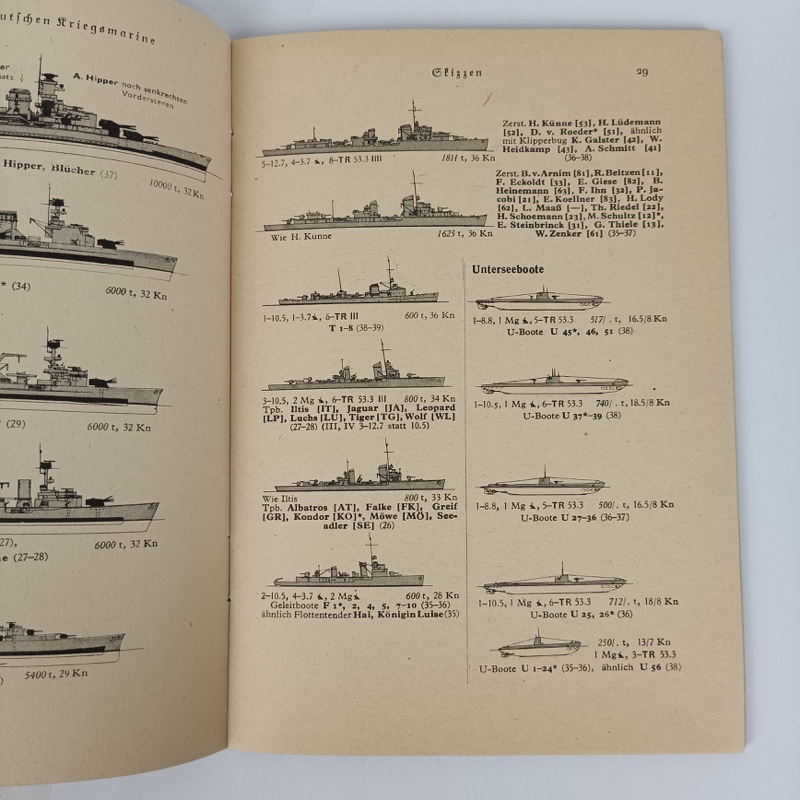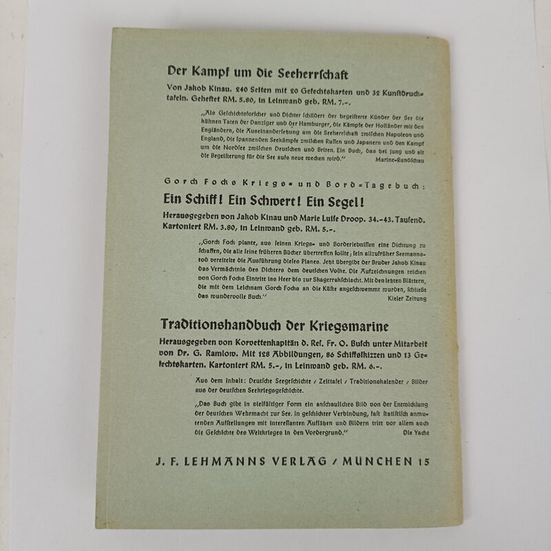 Libro original, publicado en 1940, en excelente estado de conservacion, sin apenas uso. En el interior incluye fotografías y dibujos esquemáticos sobre doctrina y tácticas militares navales y de los diferentes barcos de la Armada Alemana de 1940.