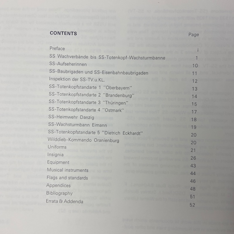 Los libros contienen abundante material gráfico y documentación sobre uniformología, distintivos y organización de las diferentes ramas de las SS durante el Tercer Reich. Escrito en inglés.