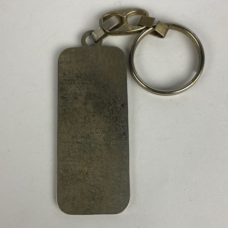 Llavero metálico rectangular con el emblema legionario y el texto “El espíritu de compañerismo”