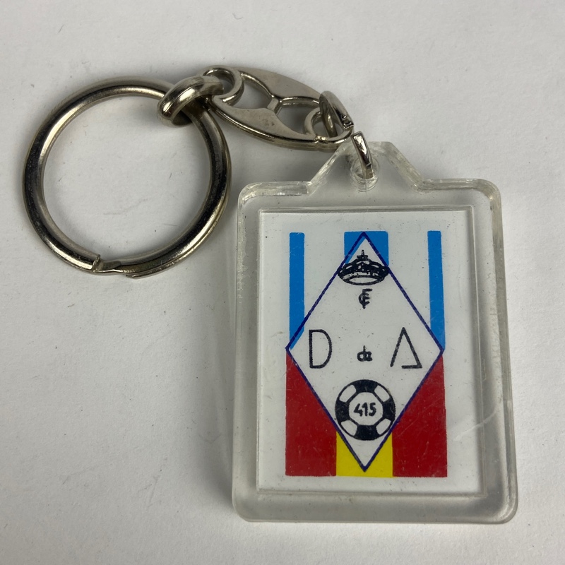 Llavero conmemorativo en metacrilato transparente con emblemas de la Comandancia 415 de la Guardia Civil en Gerona. Presenta los símbolos de la unidad en ambas caras, con detalles en rojo, verde, azul y amarillo.