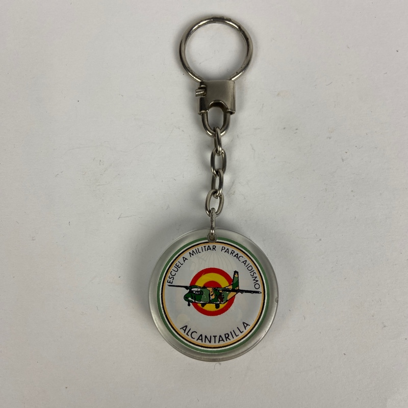 Llavero de la Escuela Militar de Paracaidismo de Alcantarilla, españa. En el reverso figura el emblema donde se lee “Escuadrón 721”.