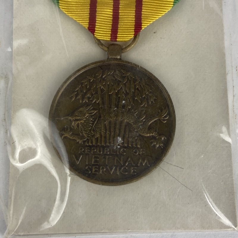 La medalla se otorga para reconocer el servicio durante la Guerra de Vietnam por parte de todos los miembros de las Fuerzas Armadas de los EE. UU. Consta en su frontal de un dragón asiático tras unas cañas de bambú bajo las cuales puede leerse Republic of Vietnam Service. En el reverso lleva la imagen de una antorcha sobre una ballesta con el borde inscrito “UNITED STATES OF AMERICA”.
